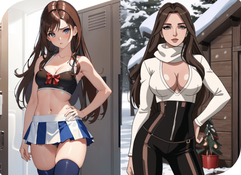 Flexibility isn’t just limited to poses and positions with our AI generator hentai tool. You can think of cosplay and clothing, or even scenes and scenarios. Get a custom upskirt picture and drool over those baby blue panties. Maybe even set the stage for consensual exhibitionism and have the background be somewhere public.