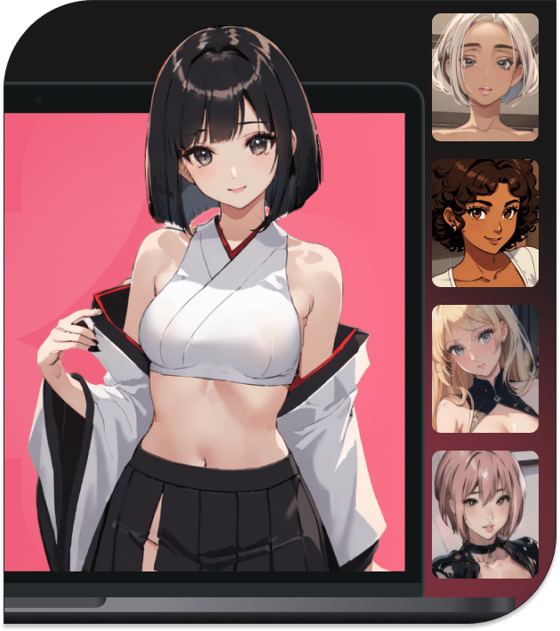 Pick your leading lady from a lineup of sizzling AI hentai characters or create a brand-new one. Whether you’re into raven-haired tsundere bosses or dark-skinned elf girls, our adult artwork generator can do it all.
